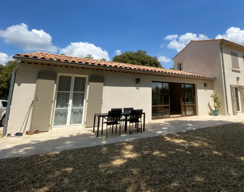 Nos artisans ont pris en charge la totalité du gros œuvre, depuis le terrassement et la création de fondations solides jusqu'à l'élévation des murs et la pose de la charpente. Pour préserver le charme du bâti, nous avons réalisé une toiture en tuiles traditionnelles et appliqué un enduit de façade en parfaite adéquation avec l'existant. De larges baies vitrées ont également été intégrées pour inonder cette nouvelle pièce de lumière naturelle et créer une transition fluide vers le jardin.